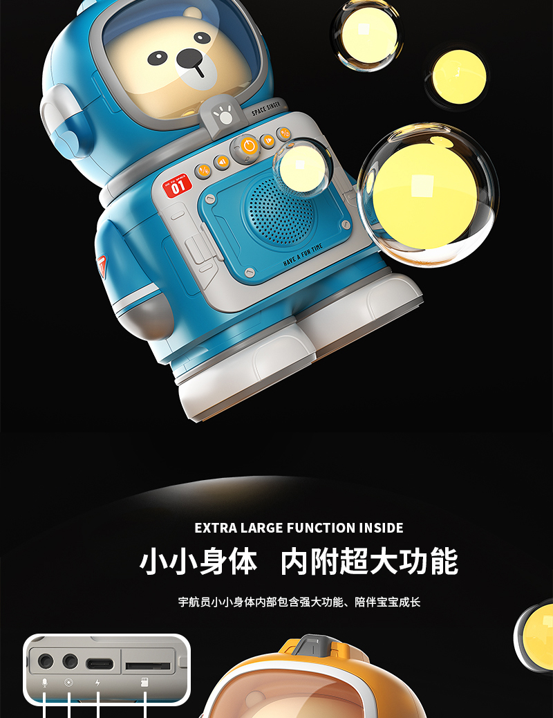 產品名稱:兒童音樂早教學習機-小熊藍牙故事機觸屏小夜燈魔音點唱機(內存卡自備)LY-1017藍色